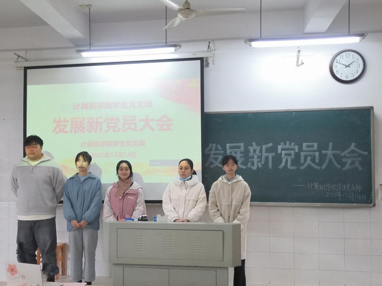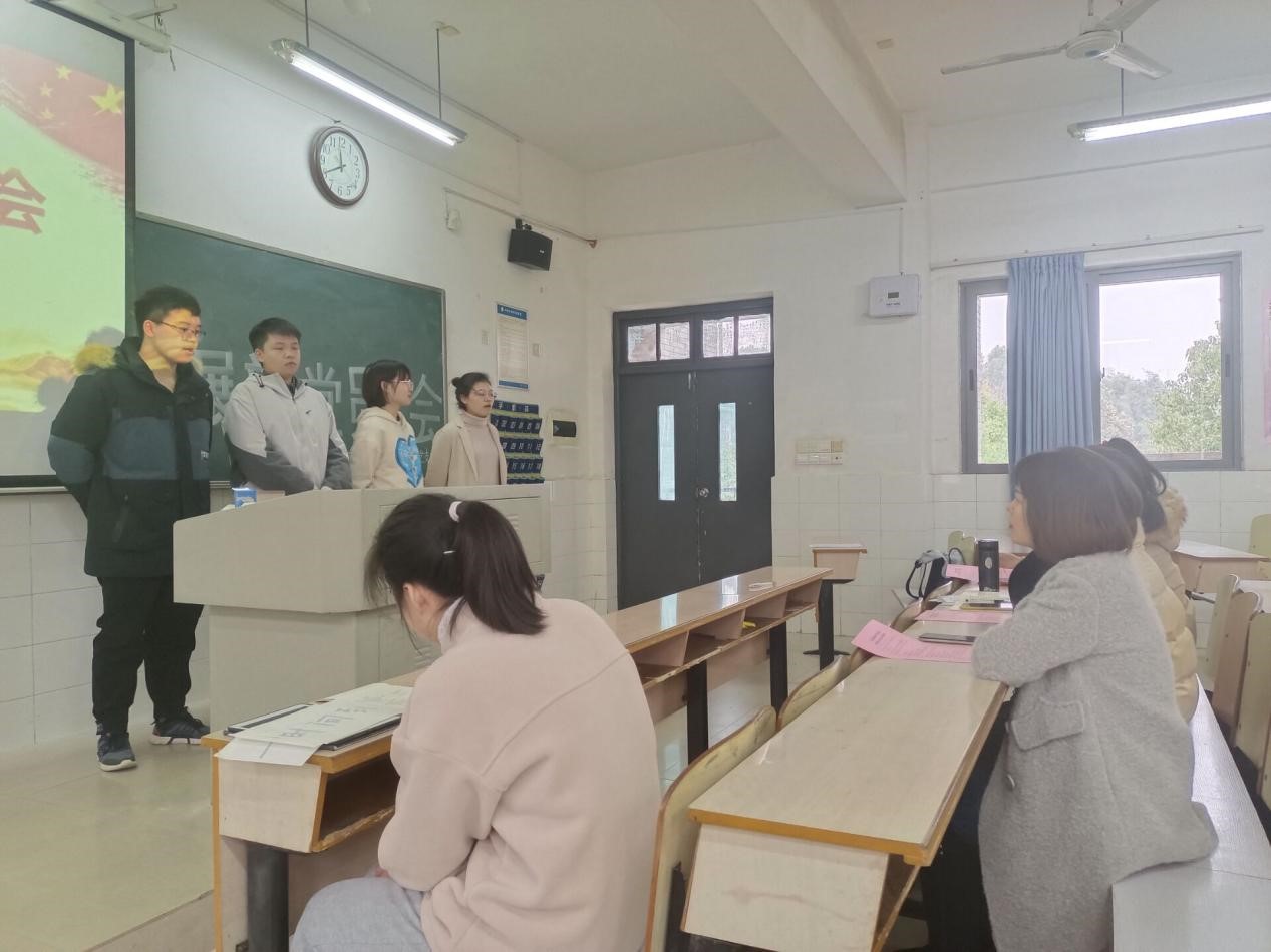 2021年12月14日,金年会官网于玉衡北309、玉衡北310召开发展新党员大会,并于腾讯会议同步进行线上会议。参会人员有学院党委副书记陈奕、党支部书记关红儒以及学生党员、发展对象。会议分别由罗林、苏琴主持。