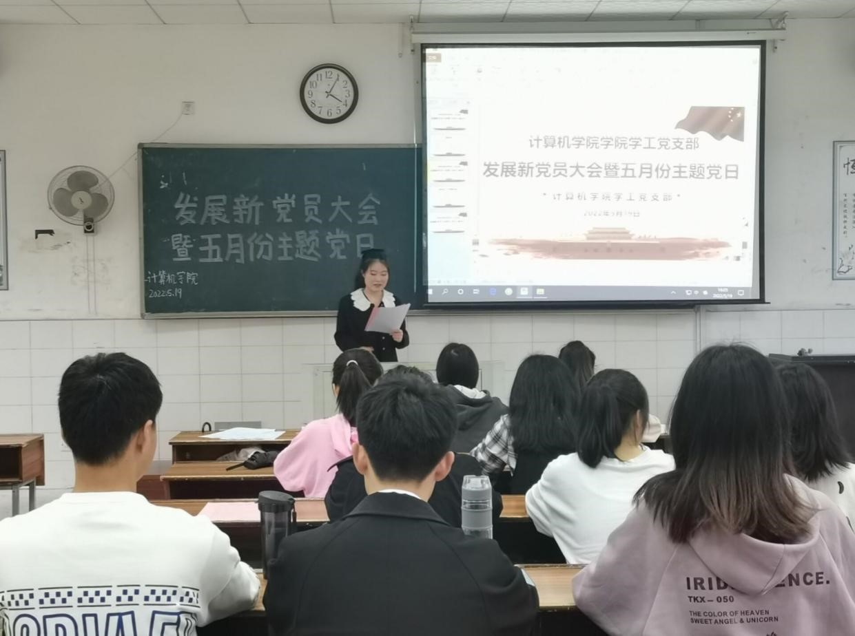金年会官网于2022年5月19日开展了发展新党员大会暨五月份主题党日活动。与会人员有学院党委书记刘立勇、党委副书记陈奕、学工党支部书记关红儒、学院团委书记叶晶、学工办老师付小霞、全体学生党员以及发展对象。