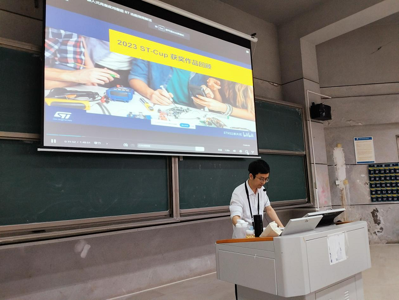 叶君炎从“物联网或嵌入式是什么”入手,围绕物联网与机器人相关学科竞赛进行了讲述。他通过分析河南大学某团队的无人机项目,让同学们对“嵌入式”有了初步的了解。他介绍了“三院”学科竞赛集训及人员选拔的相关内容,号召同学们参加集训,并详细讲解了2024年全国大学生物联网设计竞赛、蓝桥杯电子赛的竞赛时间、要求、选拔流程及命题等。