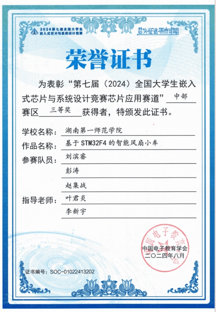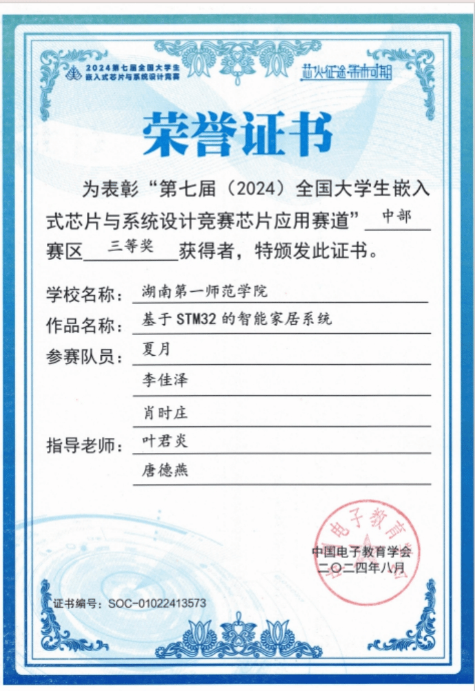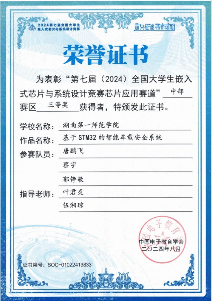 第七届(2024)全国大学生嵌入式芯片与系统设计竞赛圆满收官。该竞赛由中国电子学会主办、东南大学承办,是面向全国高校学生的权威赛事,已连续 4 年入选 “全国普通高校大学生竞赛排行榜”。此次比赛竞争激烈,金年会官网首次组队参赛,在指导老师叶君炎的精心指导下,参赛学生凭借扎实专业知识与拼搏精神,于中部赛区荣获三等奖 3 项。