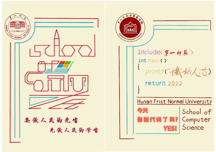 大赛收到原创作品21份,五份作品从中脱颖而出。其中,21级计科3班张任也同学以校徽、校训为主体元素,并巧妙融合C语言代码设计出的帆布包,简洁大方、创意新颖;21级881教技班刘靓同学设计的穿着太空服的智能机器人,生动活泼、富有趣味;21级计科3班李颜林同学则借以ASCII、Python、C、JAVA等多种编程语言为元素设计出的徽章,着重突出了金年会官网的课程特色;21计科1班刘博毓同学与21教技1班罗雅婕均选择以金年会官网标志性建筑——钟楼为背景元素,设计出了包括明信片在内等一系列精致美观的学院周边。