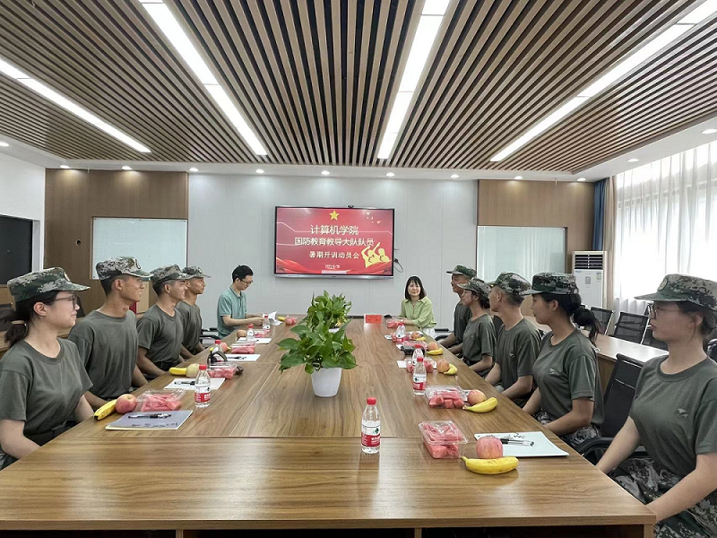 6月30日下午我在玉衡楼406会议室召开国防教育教导大队队员暑期开训动员交流会,学院党委副书记陈奕代表学院向九名队员表示慰问,了解大家训练的进度和各自的收获体会。