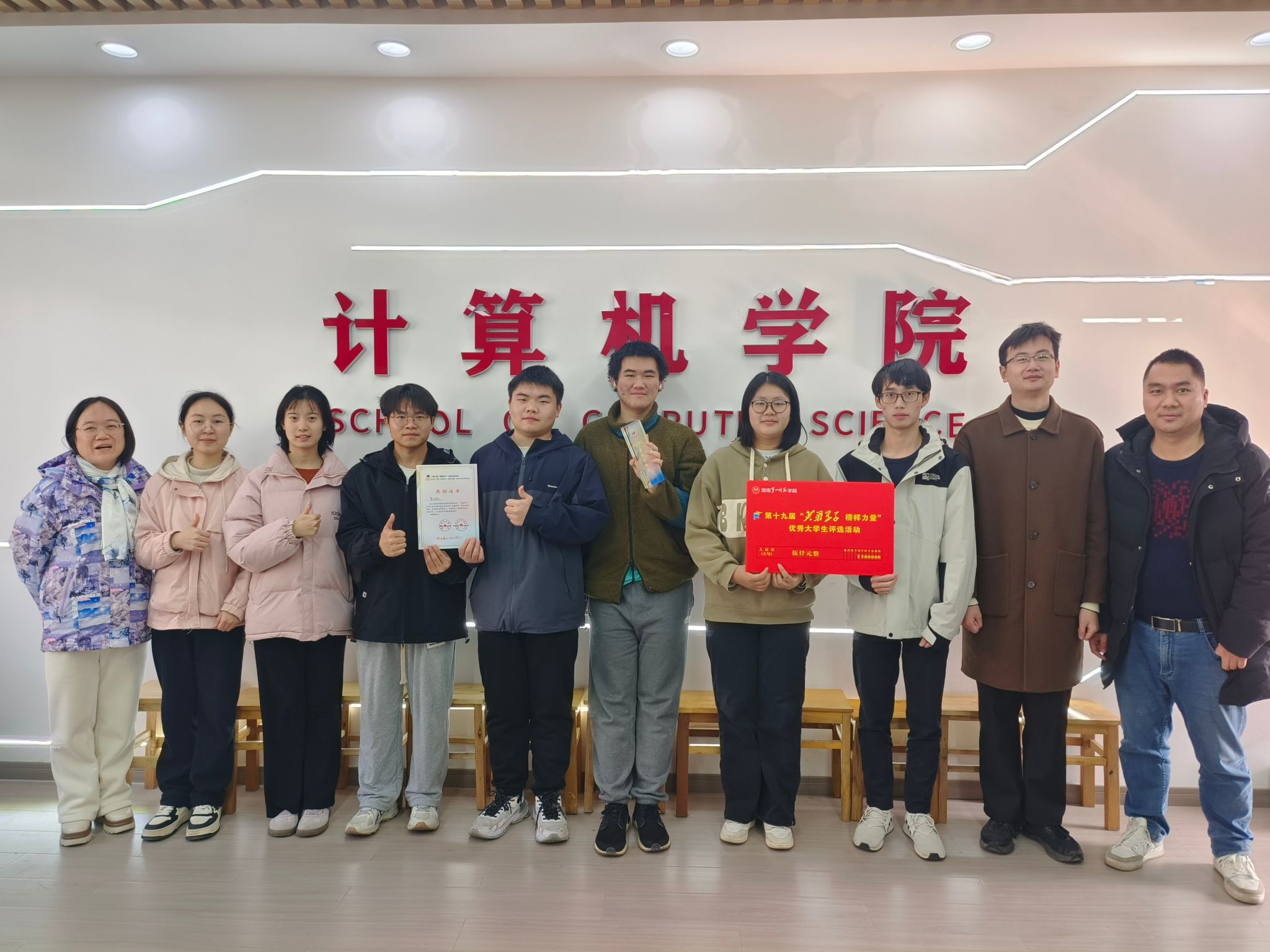 金年会官网智汇团队凭借在专业竞赛中的突出表现,荣获校第十九届“芙蓉学子·榜样力量”学术创新奖。该奖项充分肯定了团队成员在学术创新与实践探索中的卓越成绩。智汇团队由跨年级的8名成员组成,包括21级计科3班张任也,22级计科4班覃苏苏、夏月、熊涛、曾雨、梁欣如,22级计科5班蔡宇,以及23级计科1班刘坤浩。团队在唐德燕、周聪两位教师的专业指导下,通过持续协作与创新突破,在学科竞赛领域取得了显著成效。