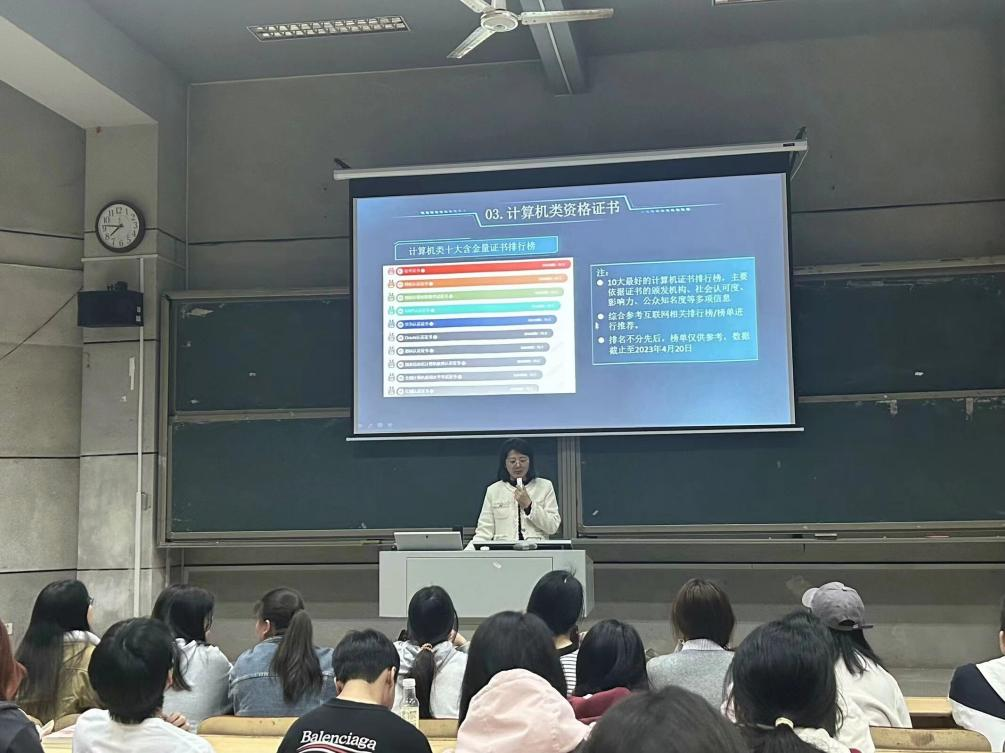 为帮助学生做好职业生涯规划,提高就业竞争力,4月8日,邱雪影老师在润寰南105报告厅开展了计算机类学生职业发展和行业资格证书备考指导讲座,金年会诚信信誉至上22级、23级各班代表参加了讲座,讲座由副院长李新宇主持。