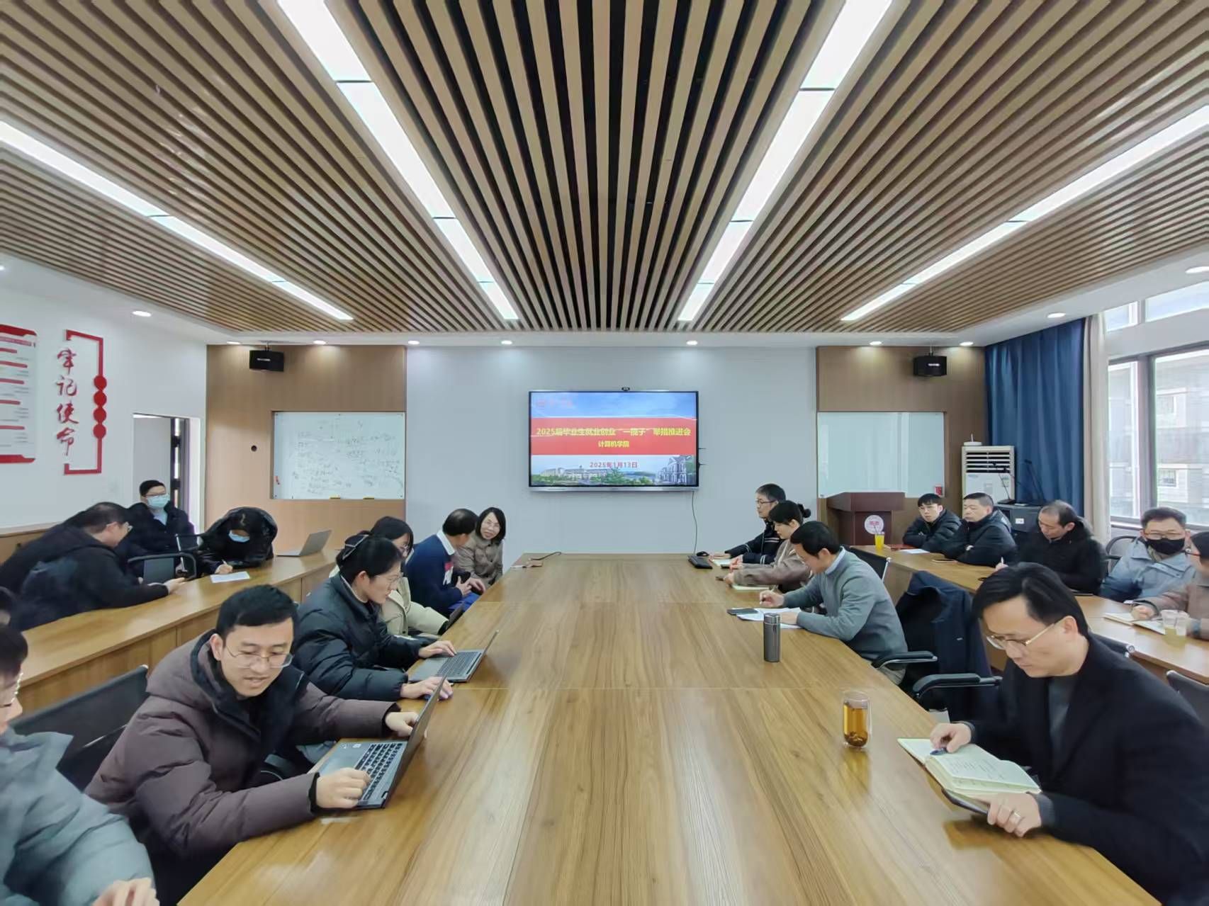 为进一步推动金年会官网毕业生就业创业工作,1月13日下午,金年会官网在玉衡楼406召开2025届毕业生就业创业“一揽子”举措推进会,院长杨恒伏、院党委副书记刘大维(主持工作)、院党委副书记陈奕、副院长杨梦云以及全体教师参加会议,会议由刘大维主持。