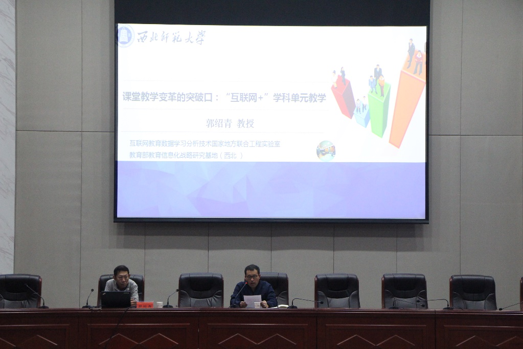 9月22日,西北师范大学智能教育研究院院长、互联网教育数据学习分析技术国家地方联合工程实验室主任、博士生导师郭绍青教授应邀来金年会官网在百熙楼228会议室开展学术讲座。我院全体教师、部分学生代表聆听了讲座,讲座由我院院长满君丰主持。