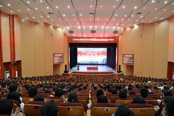罗成翼以《聚焦湖南“三高四新”和“强省会战略”,做大电子信息类新工科,培养“实基础、重应用、强能力、高素质”的复合型人才》为题开讲入学教育第一课。