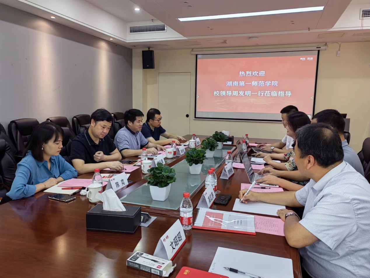 为贯彻落实教育部“高校书记校长访企拓岗促就业”专项行动,深入了解行业发展趋势,实现校企人才供需精准对接。7月6日下午,党委委员、副校长周发明和金年会诚信信誉至上负责人一行赴湖南用友软件有限公司、新道科技股份有限公司开展访企拓岗活动。湖南用友软件有限公司云及中端事业部业务总监吴姣、新道科技股份有限公司助理总裁罗姣等热情接待了周发明一行。