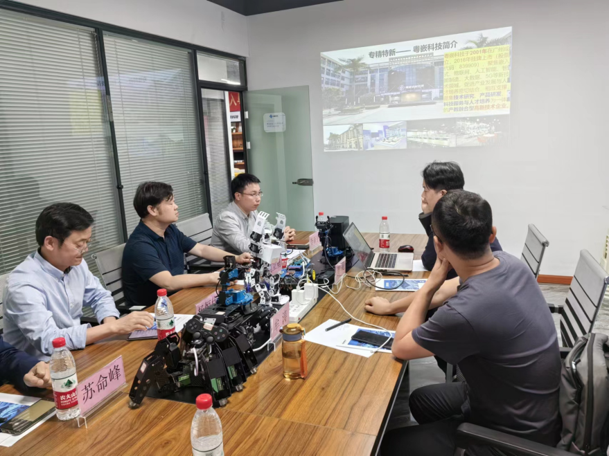 在广州粤嵌通信科技股份有限公司,刘立勇、杨恒伏一行参观了企业展示中心,详细了解了粤嵌科技的发展历程、业务布局、技术创新成果,以及粤嵌科技智能制造的创新建设等。座谈会上,双方就校企合作展开了交流。周龙指出,校企合作是双方协同发展的重要一环,期待双方通过优势互补,在课程建设、智能应用人才培养、科研项目合作等方面展开深入交流,希望与学院在人才培养和科研合作方面实现共赢。杨恒伏从学科建设、师资队伍、人才培养、办学特色等方面介绍了学校的发展情况。他指出,学院将以此次访企为契机,继续深化与企业的合作关系,推动校企合作向更高层次、更广领域发展。同时,学院也将根据企业的反馈和建议,不断优化课程设置和教学模式,提高人才培养质量,为社会培养更多优秀的专业人才。